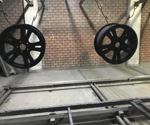 4.ADIM: JANTIN ELEKTROSTATİK TOZ BOYA İLE BOYANIP PİŞİRİLMESİ